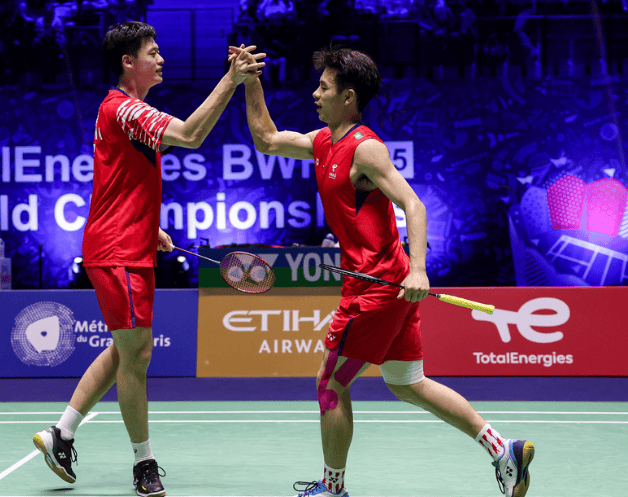 正赛倒数第二个比赛日,陈柏阳/刘毅迎来了男双半决赛的考验,对阵印度王牌男双兰基雷迪/谢提,本场比赛两对组合打得非常激烈,在前两局握手言和的情况下,陈柏阳/刘毅靠着决胜局稳定的发挥,以2-1获胜,职业生涯首次杀入世锦赛的男双决赛!