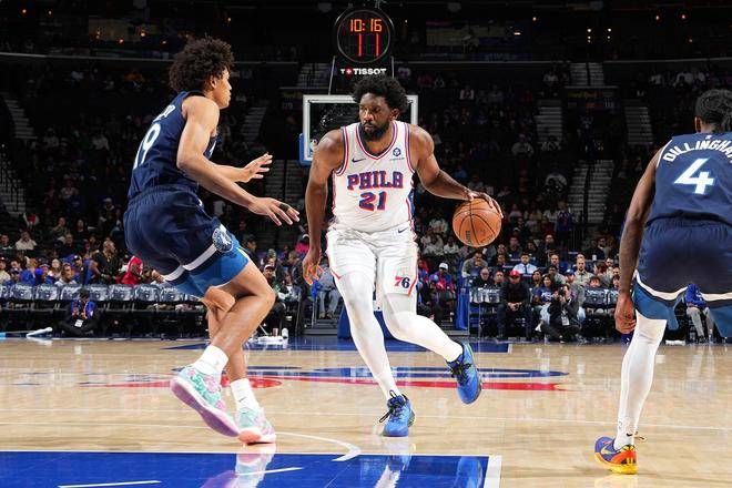 进入第二节,恩比德继续在攻防两端发挥作用,帮助球队保持领先。在半场结束前,他外线命中了一记三分球,随后又完成了一次反击,慢三步上篮得手。半场结束时,恩比德的个人数据为9分、5个篮板和7次助攻,外加3次抢断,表现相当全面。