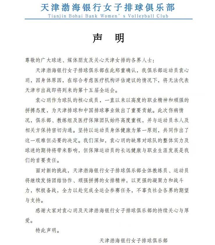 作为一名大副攻,袁心玥的位置相当关键,且一直以来她都备受关注。许多人曾预料她会继续效力于国家队,但她的落选让不少人感到意外,尤其是她的名字未能出现在天津女排的大名单中。有些人猜测,袁心玥可能已经与土耳其的费内巴切女排签约,因此无法参加全运会。然而,天津女排在10月18日深夜发布了官方声明,明确表示袁心玥的缺席并非因为其他原因,而是因伤病。经过球队、她本人及医疗团队的沟通后,最终做出了这一决定。天津女排对袁心玥给予了高度评价,认为她的缺席无疑会对球队的实力和比赛期望产生影响。