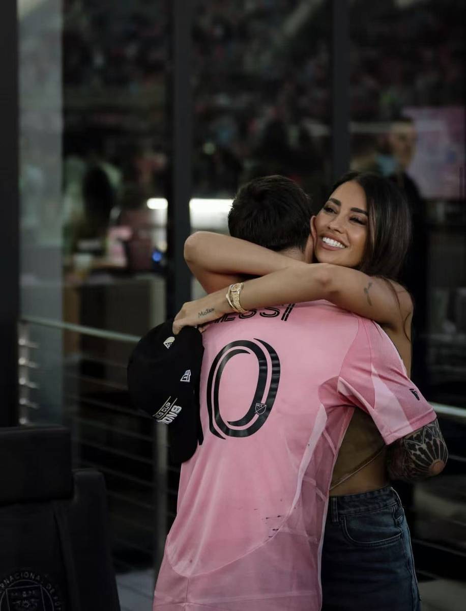 这个夺冠之夜,安东内拉与三个儿子都身着迈阿密国际的粉色球衣,全程在场边为梅西呐喊助威。从比赛开始前的紧张守候,到梅西送出关键助攻时的激动欢呼,再到终场哨响后的喜极而泣,安东内拉的情绪始终与球场上的丈夫同频共振。当梅西被队友抛向空中庆祝时,镜头捕捉到她抬手擦拭眼角泪水的画面,那泪水里既有对丈夫付出的心疼,更有对胜利的喜悦。这种无需言语的默契,源于两人从小相伴的深厚情谊,从罗萨里奥的青涩少年少女,到如今携手走过二十余年的人生伴侣,他们的爱情早已与彼此的生命紧密相连。