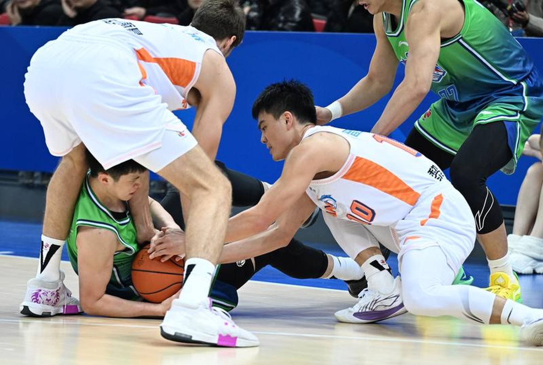 易边再战,福建队发起反扑,单节轰下25分试图缩小分差,邹阳在内线多次突破得分,一度让比赛悬念回升。但天津队并未慌乱,林庭谦挺身而出,不仅凭借精准的传球串联全队进攻,还多次在关键时刻命中得分,与外援哈姆雷特形成有效呼应。第三节结束时,天津队以77-66保持11分的领先优势,成功稳住局势。这一节中,林庭谦与黎伊扬的拼抢进入白热化,在一次关键的篮板球争夺中,两人同时起跳拼抢,身体碰撞激烈,最终球权被天津队掌控,这一回合也成为双方缠斗的缩影。