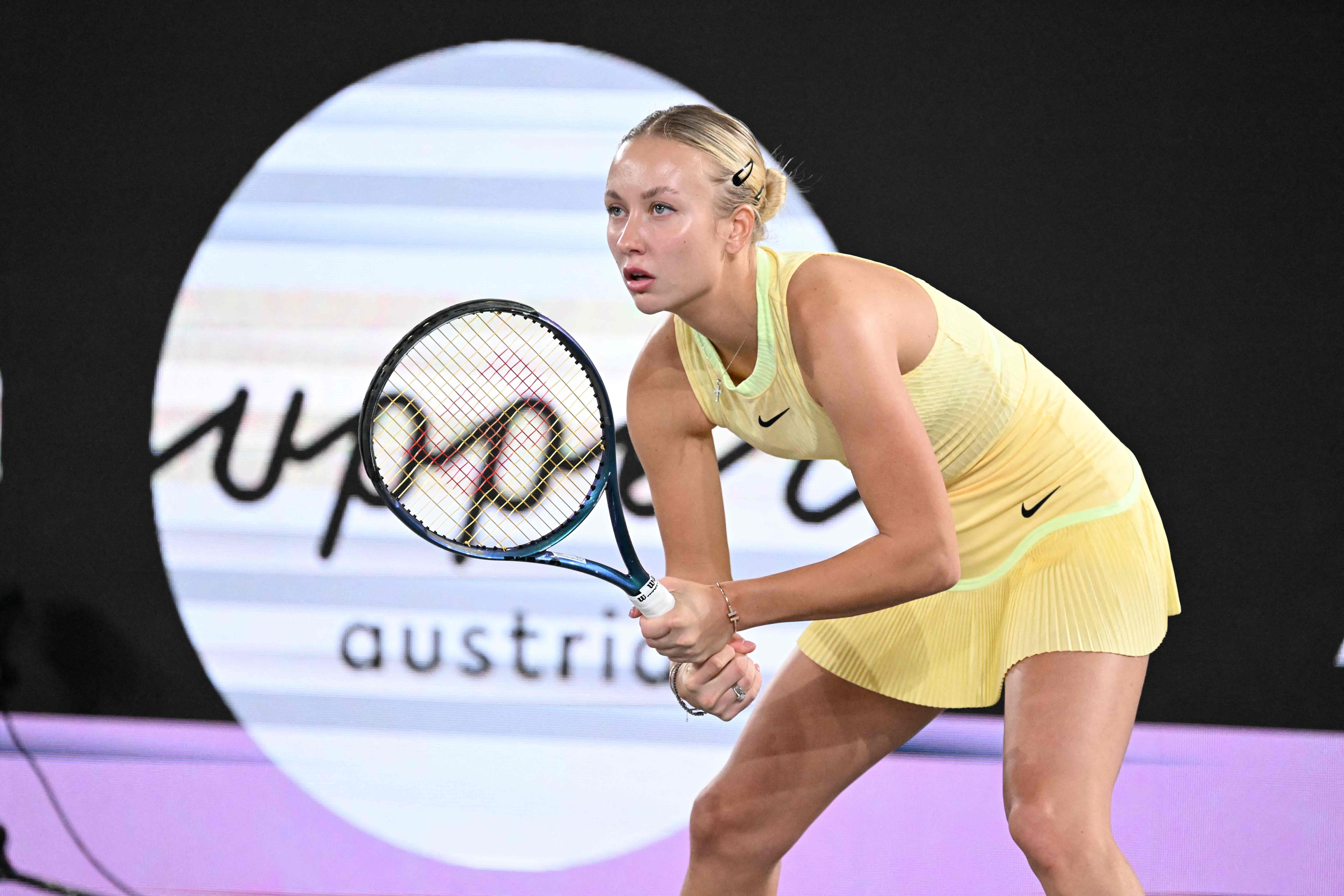 首盘比赛便奠定了整场胶着的基调,萨巴伦卡的强势开局与波塔波娃的顽强反扑形成鲜明对抗。作为头号种子,萨巴伦卡开场便展现出世界第一的压制力,凭借标志性的暴力正拍与精准发球连保带破,迅速建立2-0的领先优势。她的一发得分率高达82%,首局轰出的195公里/小时发球直接迫使波塔波娃回球下网,展现出硬地赛场的统治力。但波塔波娃并未就此崩盘,第三局抓住萨巴伦卡的失误完成回破,随后凭借稳定的底线相持与网前截击守住发球局,将比分追至2-2平。此后双方陷入发球大战,各自牢牢掌控自身发球局,没有再给对手破发机会,比分交替上升至6-6平,不得不通过抢七决胜。