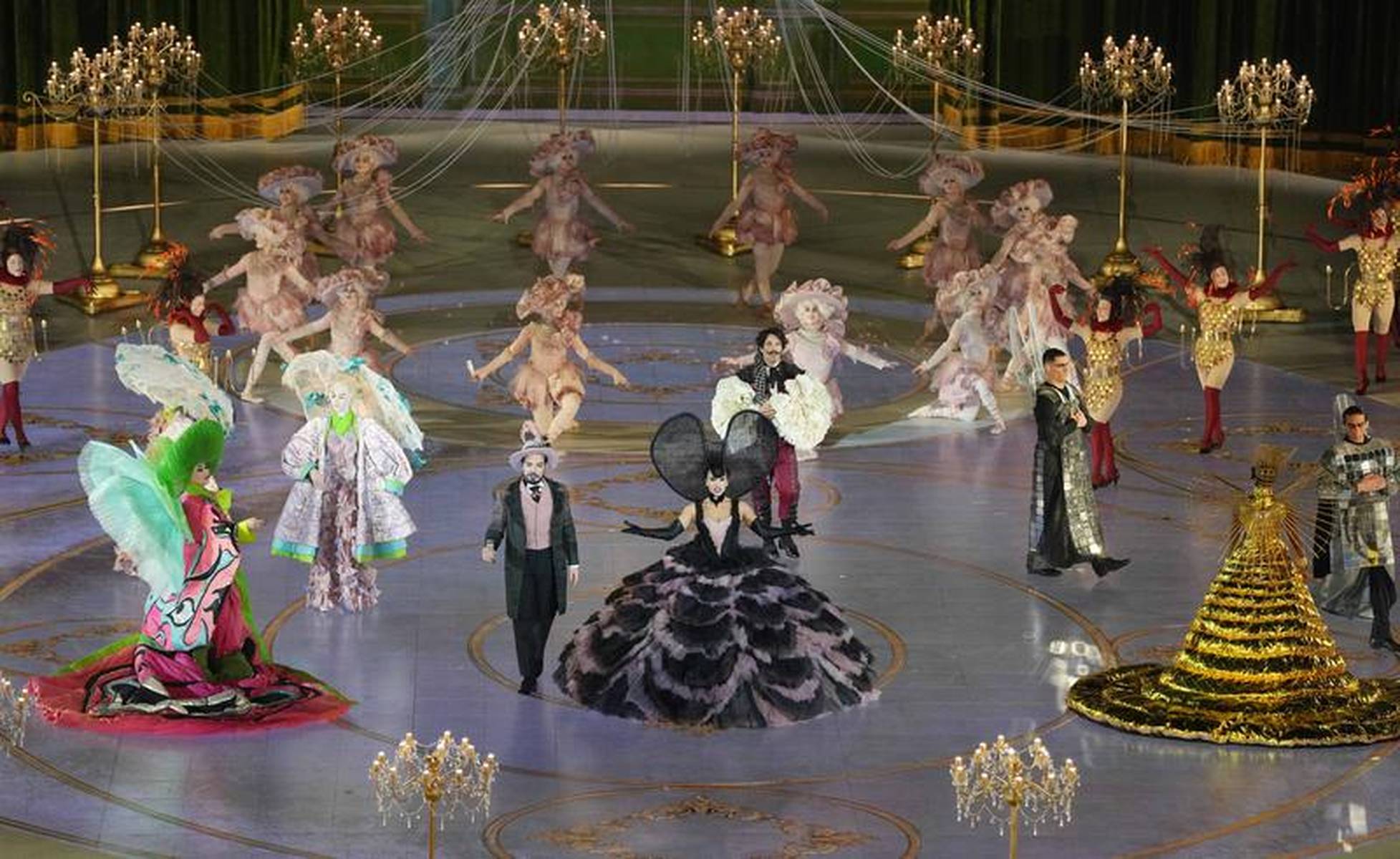 整场闭幕式的核心亮点,便是冰雪元素与古典文明的深度融合,从舞台设计到文艺表演,每一处细节都暗藏巧思。舞台设计灵感源自一滴水,这滴水串联起阿尔卑斯山的冰雪、波河河谷的平原与威尼斯的潟湖,将自然之美与意大利的地域特色完美呈现,而舞台背景便是竞技场的古老石墙,灯光投射下,冰雪纹路与古罗马浮雕交相辉映,仿佛冰雪从千年古迹中缓缓流淌而出,既有现代设计的灵动,又有古典文明的厚重。